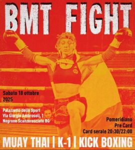 Sabato 18 ottobre 2025 si terrà il BMT Fight, una serata imperdibile dedicata a Muay Thai, K-1 e Kickboxing, presso il Palazzetto dello Sport di Scanzorosciate (BG), in via Giorgio Ambrosoli.
